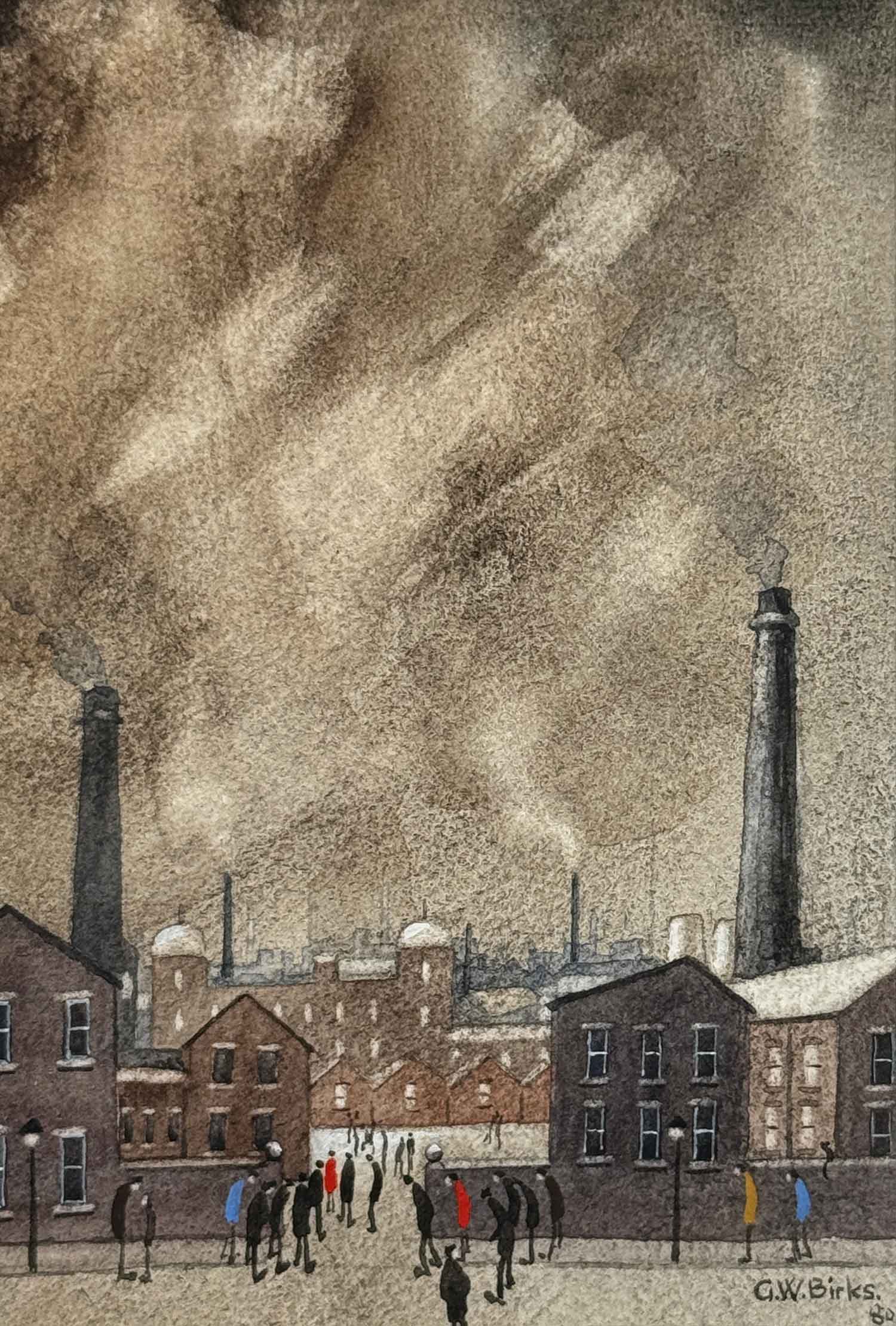 Geoffrey Woolsey Birks was born in Leeds, Yorkshire. He attended Bradford College of Art for 2 years as a full-time student and studied privately in the tuition of Fred Jones. However he worked mainly in the textile trade in the industrial towns of Yorkshire. And the North of England, rising to the position of Production Director.
