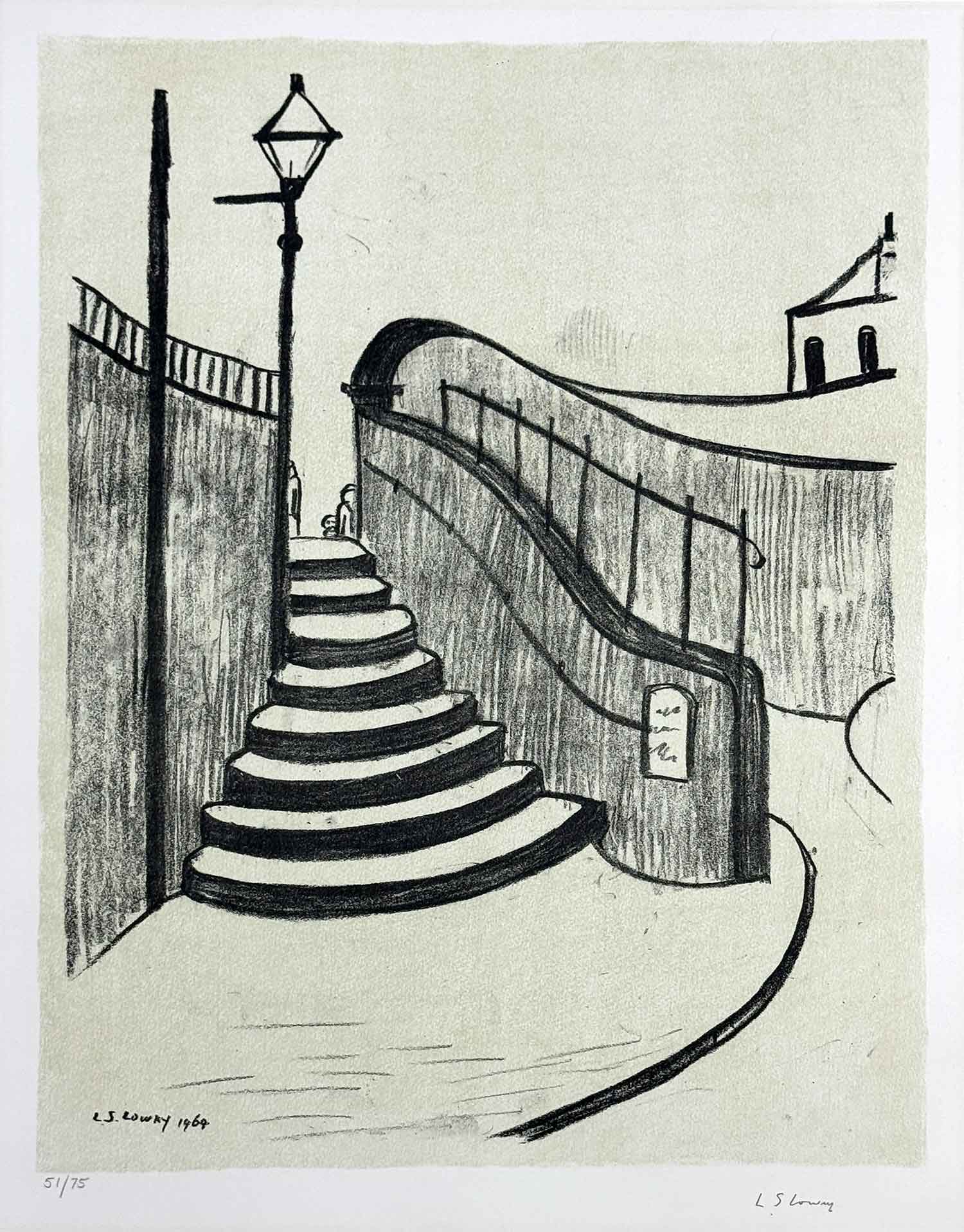 L S Lowry – Old Steps Stockport – Signed Original Lithograph