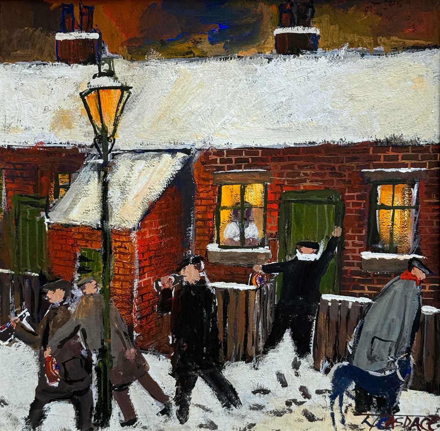 “For me, my personal identity has always been linked with a sense of social togetherness which was so much a part of my own childhood. It is this sense of loyalty and shared experience that I aim to capture in my paintings.”