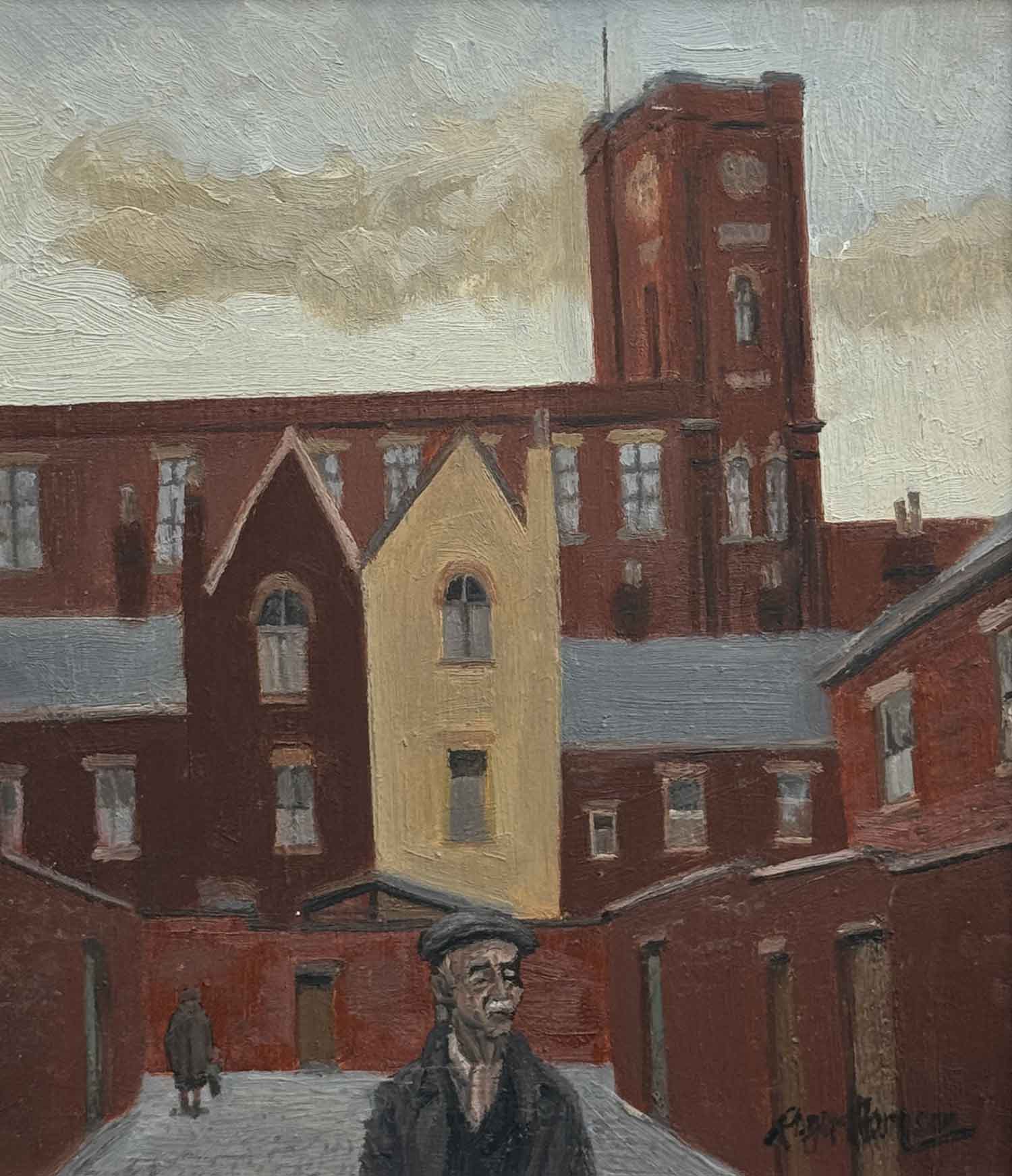 Roger Hampson (1925 – 1996), was born in Lancashire and is famous for his paintings, drawings, lino prints and mono prints. Featuring the industrial surroundings in which he was brought up with mining scenes. Mill scenes, street scenes and pictures of the people that he encountered in these surroundings. Roger Hampson studied at Manchester College of Art from 1946 – 1952. And also followed a career in teaching art becoming the principal at Bolton College of Art & Design from 1978 to 1986. However in addition Roger was elected president of the Manchester Academy of Fine Arts from 1969 to 1976.