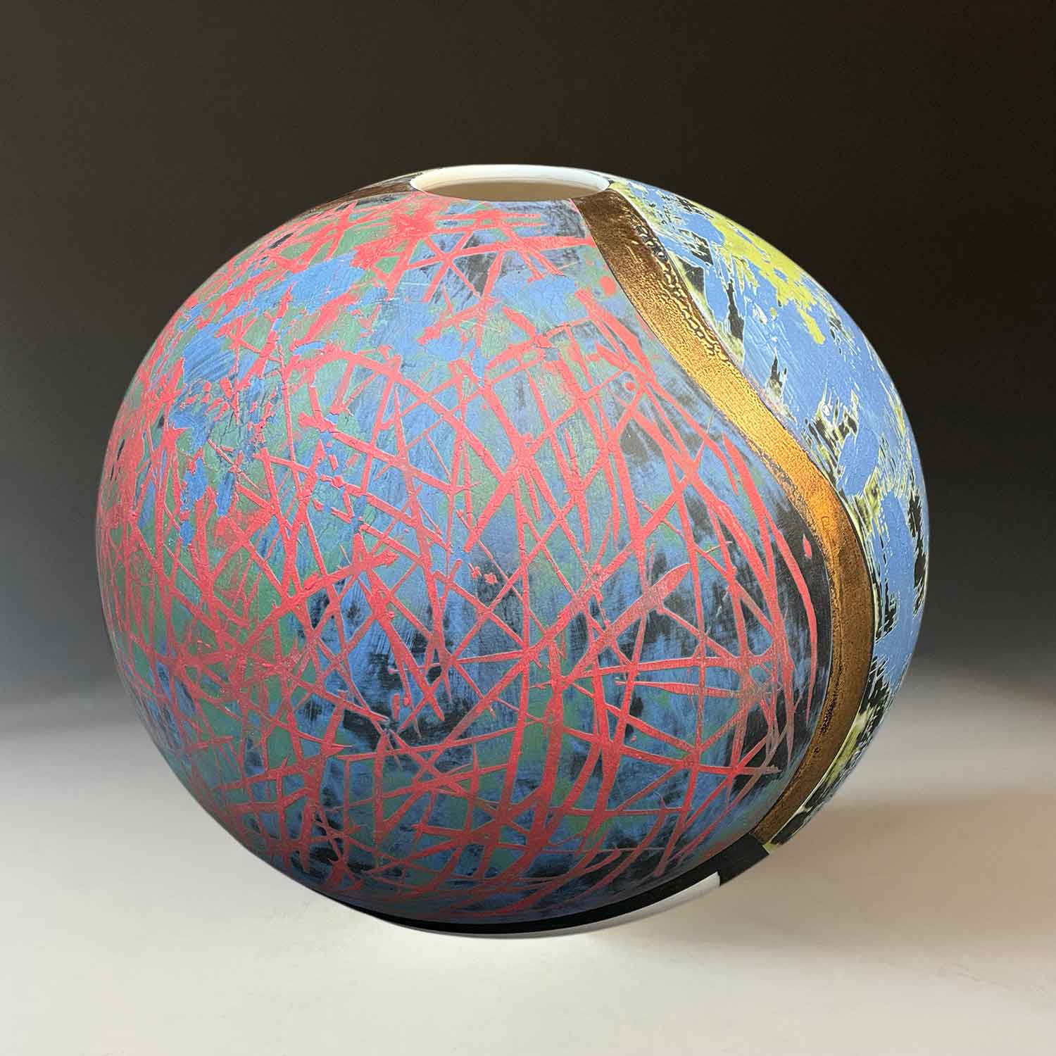 I use the surface of the pot as a painter uses a canvas. Controlled, linear designs are juxtaposed with looser, more painterly areas. But I find that to use the medium of ceramics makes the “paintings” I create much more accessible.