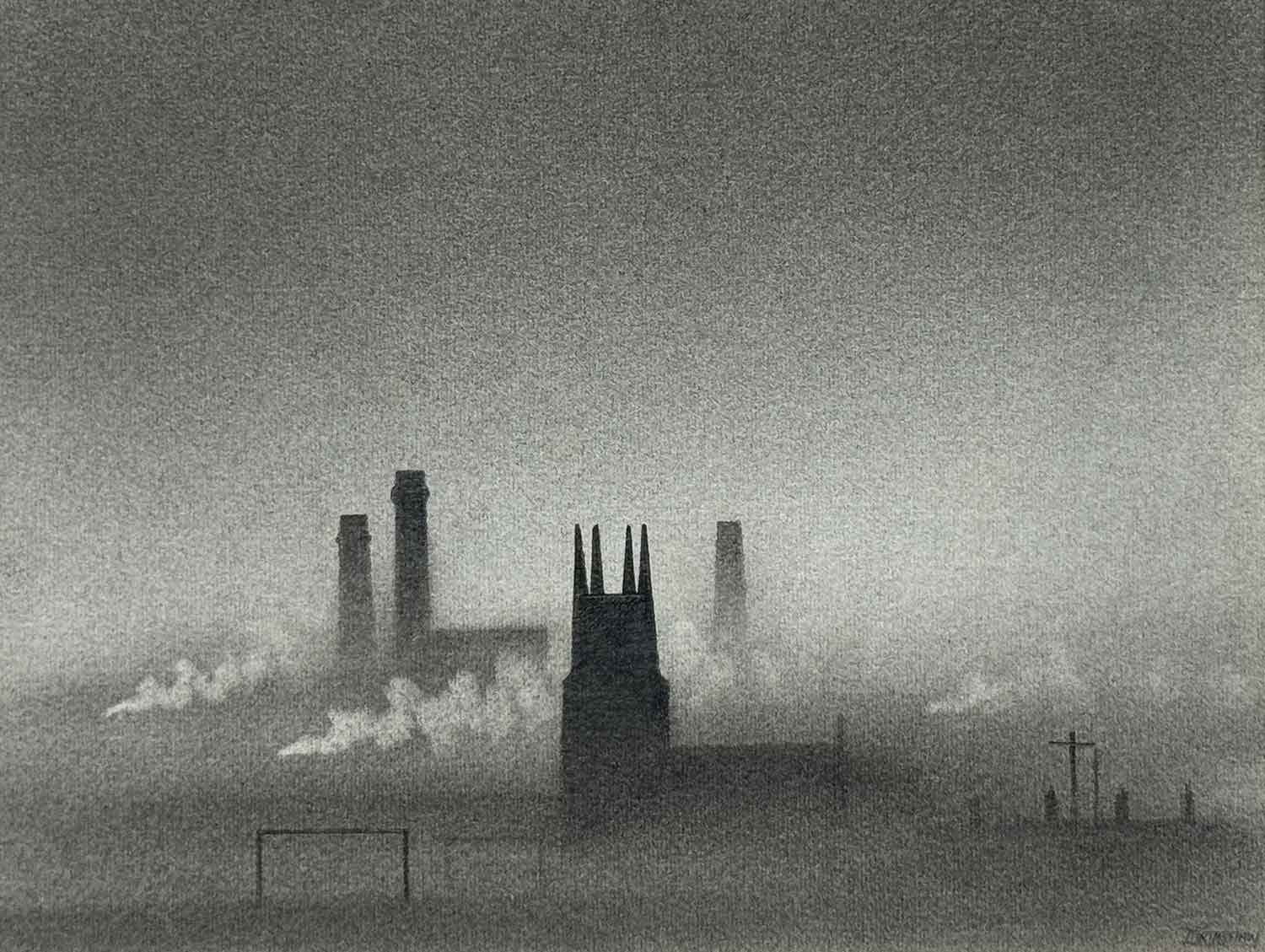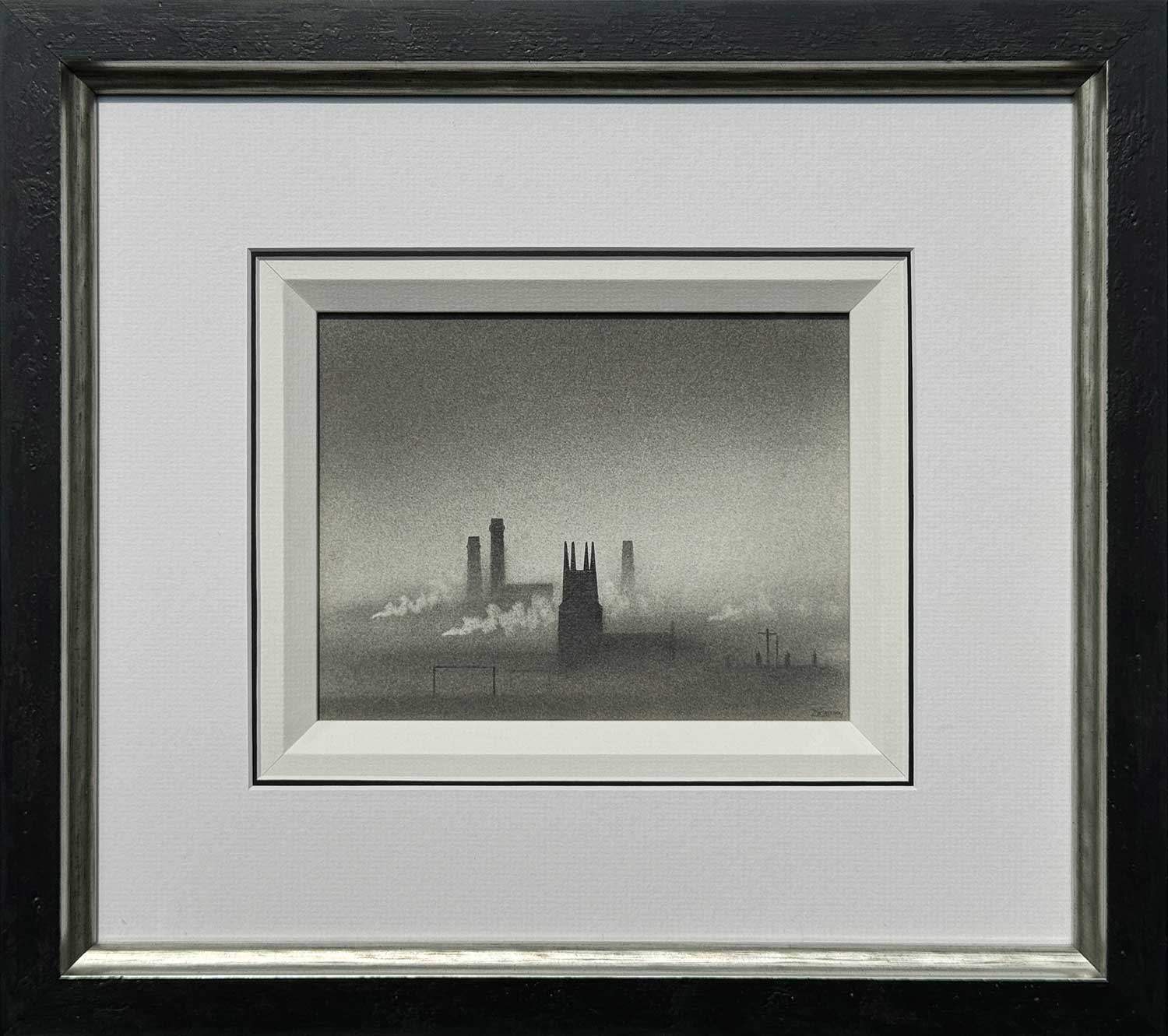 Trevor Grimshaw Football Pitch & Church Original Drawing for Sale